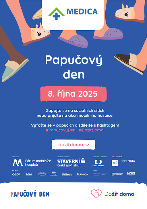 Papučový den, který se koná 8. října 2025, je příležitostí zapojit se do aktivit mobilního hospice. Přijďte se vyfotit v papučích a sdílejte své snímky na sociálních sítích.