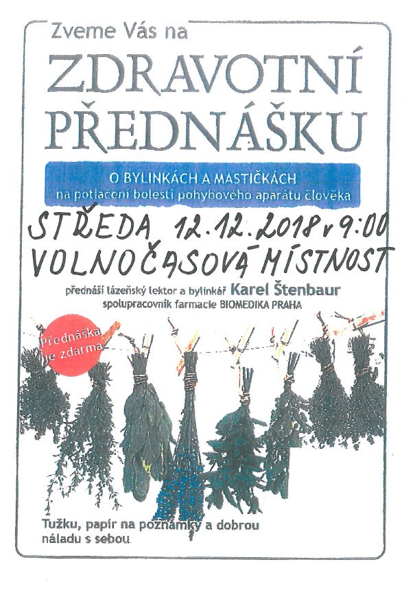 Přednáška o bylinkách a matičkách ve volnočasové místnosti